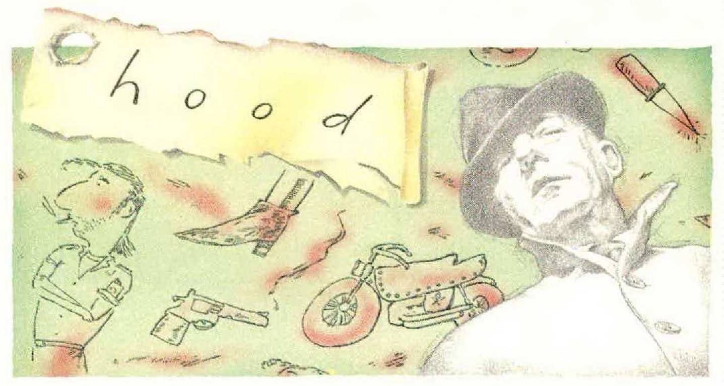 Last spring, following the publication of her unauthorized biography of Nancy Reagan, which alleged that Nancy Reagan and Frank Sinatra had been romantically involved, Kitty Kelley reported that she had received threatening telephone messages from “a minor hood.”Hood is short for hoodlum (thug, mobster), which first appeared in the San Francisco press around 1870. So rapidly did the term catch on (“Surely he is far enough away here in this hideous wild of swamp, to escape the bullying of the San Francisco 'hoodlums’”—Cincinnati Commercial, 1871) that even at the time its origin could not be traced. One version, from 1877, had a San Francisco journalist writing an unflattering article about the leader of a gang of street toughs, whose name was Muldoon. For fear of reprisal the journalist disguised the leader’s name by spelling it backward: noodlum. The typesetter mistook the handwritten n for an h, and the word was born. An equally imaginative version appeared that same year in the Los Angeles Express, which asserted that hoodlum derived from “Huddle ‘em, Huddle ‘em!”—the title of an earlier article in the San Francisco Times, which repeated the warning cry of its subject: “a gang of bad boys from 14 to 19 years of age" who “associated for the purpose of stealing.” Another, less plausible explanation links hoodlum to the Bavarian dialect hodalum, a variant of huddellump (a ragged beggar, a ragamuffin). Hoodlum had existed for a half century before the abbreviated form hood became a word in its own right (“None of those St. Louie hoods are going to cut in here, see?”—American Mercury, 1930).