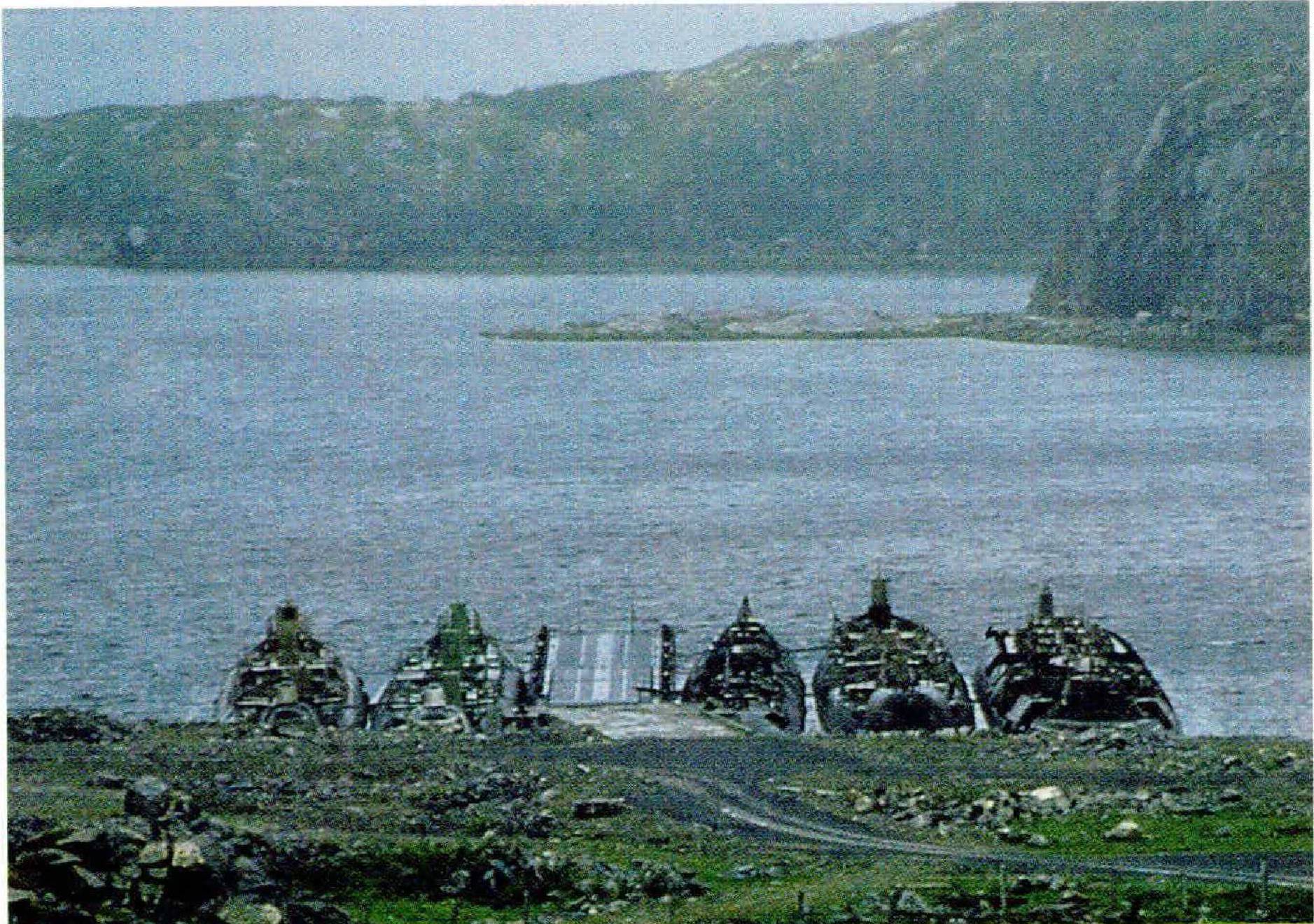 Sixty percent of Russia’s submarinebased strategic nuclear forces are in the vicinity of the Kola Peninsula, and the Pentagon worries that a decreased Russian submarine presence along the eastern coast of the United States may imply a higher density in Arctic waters. With the collapse of the Warsaw Pact, Soviet bombers were moved from Hungary to northern bases; Russian Bear bombers, some of them capable of carrying terrainhugging cruise missiles, still occasionally lest the northern radar defenses and are challenged by either U.S. or Canadian fighters. Russia’s only remaining nuclear test site is in the Arctic, on Novaya Zemlya. Two winters ago many Russian ships steamed out of the Black Sea and joined the northern fleet. The heavily armored divisions protecting the old Soviet northern flank have not withdrawn—in contrast to the Russian troops that were in Central Europe.