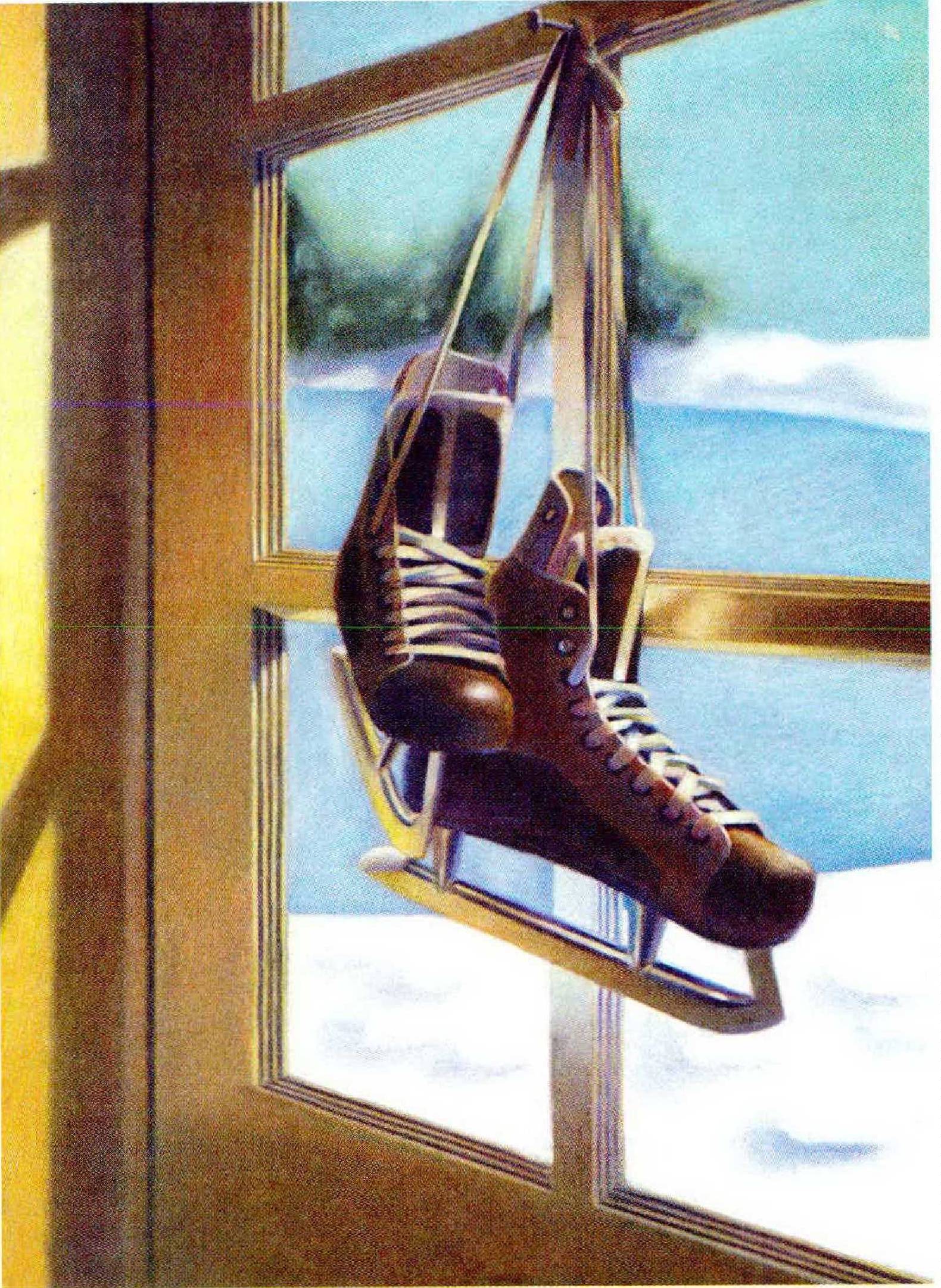 As for us, last winter was a very unusual one. We had ferocious cold (nearzero temperatures on many nights) and tremendous snows (about a hundred inches in all). Eventually a strange thing happened. The town gave in—sort of. Sometime in January the recreation department “opened” a section of the lake, and even dispatched a snowplow truck to clear a good-sized patch of ice. The boys and I skated during the rest of winter. Ever vigilant, the town officials kept the THIN ICE signs up, even though their own truck could safely drive on the frozen surface. And they brought in “lifeguards” and all sorts of rules about the hours during which we could skate and where we had to stay.