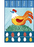 “Do you want to hold a chicken?” Bass asked, as he petted one behind the ears. I took the bird by the legs and cradled it on my chest. I had already been sold on the wholesomeness of the birds and their eggs by their topaz color. Breeds that are brown of feather and earlobe (where the coloring predicts egg color) produce brown eggs, the only proper kind in New England. Nutritionists insist that there is no difference between brown and white eggs (or, for that matter, between brown, white, and the pretty pastel eggs from exotic hens whose colors Martha Stewart has trademarked for house paint), and I confess to being unable to distinguish between the two in blind tastings. Nonetheless, I remain convinced that brown is better, and the fact that brown hens are bigger and require more feed (brown eggs cost more) confirms my prejudice.