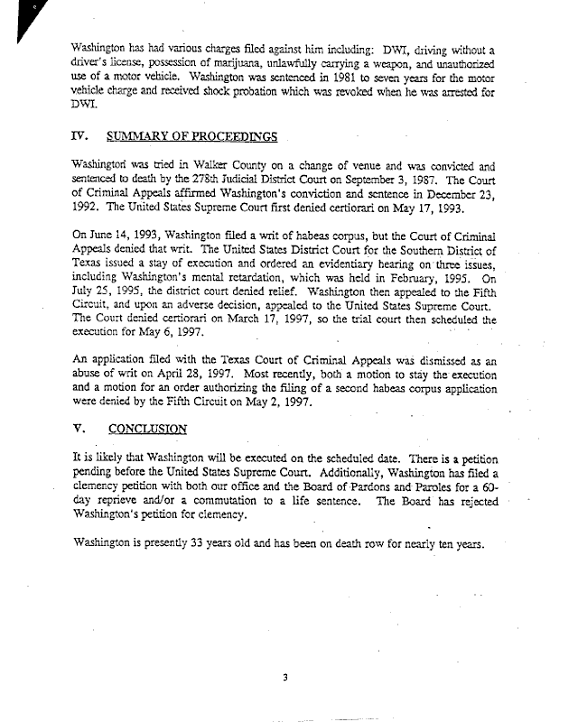 Copies of three death-penalty memoranda prepared by Alberto R. Gonzales for Texas Governor George W. Bush
