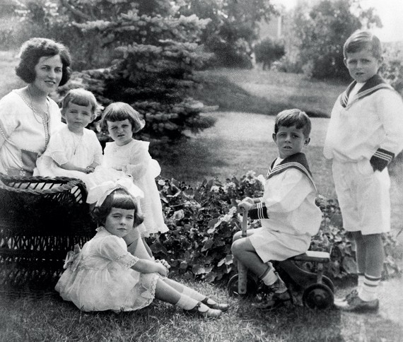 Rose Kennedy with her children around 1923. From left: Rose, Eunice, Kathleen, Rosemary (seated on the ground), John, and Joe Jr. (Barach Studios/John F. Kennedy Presidential Library and Museum)