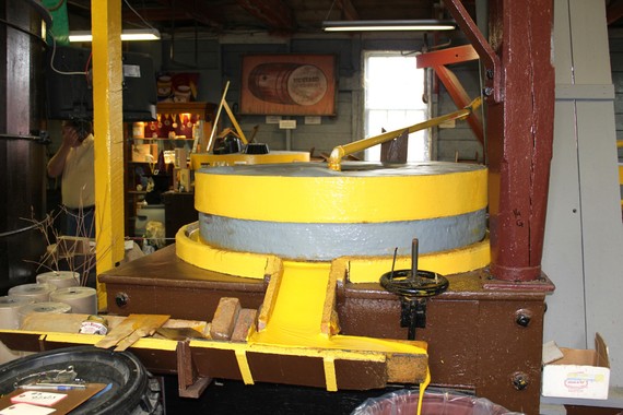 We'll get into that starting tomorrow, from the ambitious plans for the port and aspirations to lead in clean-energy generation, to the building-by-building plans for restoring a downtown. For a moment, here's a look at the process this evening's Marketplace report described. That yellow stuff, flowing down the ramp in the foreground, is mustard, as it comes out of the century-old grinding wheels at the Raye works: