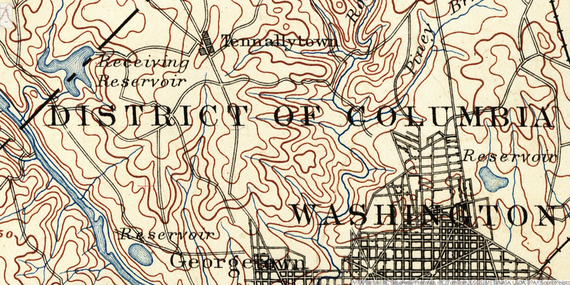 To try the historical maps, go to http://historicalmaps.arcgis.com/usgs/,  move around to find a place you care about, click on that site, and follow the instructions to see a range of historical maps. For instance, here is the way our current neighborhood in Washington looked in 1890, when today's Tenleytown was apparently called "Tennallytown" and when, surprisingly, what are now the main drags — today's MacArthur, Nebraska, Loughboro, Wisconsin, Reservoir, Foxhall, etc—had already been laid out. Also a surprise: that nearly 125 years ago there was already a reservoir overlooking the Potomac, which gave the then-unbuilt-upon Reservoir Road its name.