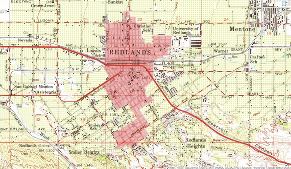 And here is how my home town looked around the time I was starting kindergarten. I am not sure* exactly what the red shading indicates, but our house was at the very bottom of the red area. Most of the other area shown was orange groves.