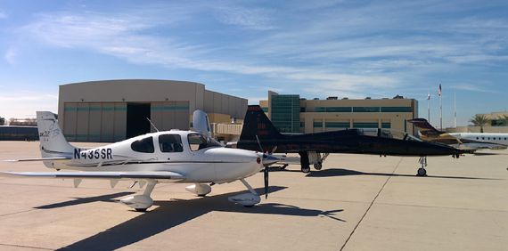 The T-38 is a great aircraft. I flew more than 1200 hours in it, but in many ways I would rather have the means to own a Cirrus (yours looks great, by the way). I have shared several moments of mutual admiration at FBOs like the photo you posted. Different shades of grass, I suppose.