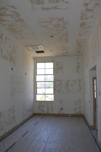 The historic designation of the school means the outside of the building must remain unchanged, including the 8-foot metal-framed windows, which invite and conduct heat from the blistering summer sun. The solution, Aaron said, has to lie indoors, isolating and insulating each room. There are heat-and-sun blocking shades, with a second layer planned when they can afford it. The new walls that divide the classrooms into smaller guestrooms are constructed with double layers of separation, filled with blown-in insulation. There is more blown insulation in the ceilings.