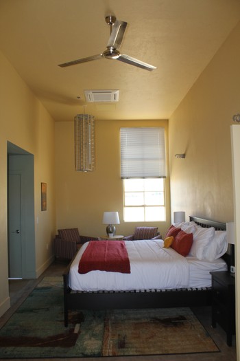 During our second visit to Ajo, just a few weeks ago, we stayed in one of the newly-completed classrooms-to-guestrooms. This part of the Curley Complex is now called the Sonoran Desert Conference Center, and ISDA’s grand plan includes using the rooms and public spaces not only for tourist overnights, but also for small conferences or retreats. The energy level was high in anticipation of the first ever arts festival opening scheduled for just a few days hence. The festival included 70 programs all around town, with artists from all over the world.