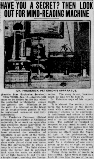 The other day I shared a collection of some of my favorite strange and delightful findings in the Library of Congress’s sprawling database of historic American newspapers. But there are many more worth sharing that I didn’t include. Like this 1908 Seattle Star story about a mind-reading machine, which I wrote about last year: