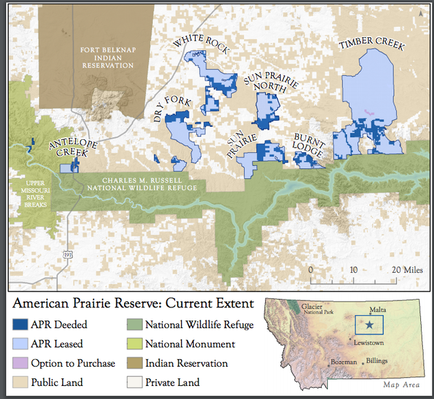 As mentioned in some earlier dispatches, the American Prairie Reserve This is an ambitious, idealistic, “market-minded environmentalist” approach restoring a Serengeti-sized area of northern Montana grassland to the flora and fauna that were there more than 200 years ago, when Lewis and Clark traversed the area. Late last year Peter Geddes, managing director of the APR, described it and similar efforts by environmental entrepreneurs as “the Yellowstones of the future” in a very interesting long piece for the NYT.