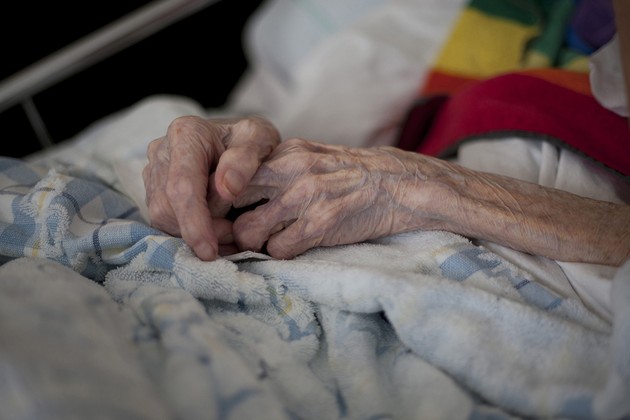 Read more on de Beauvoir’s work here. Above, 101-year-old Ida Kachanov rests her hands on a blanket at her apartment in Brookline, Massachusetts, on October 20, 2016. See more photos by Amanda Swinhart of elders and their caregivers here.