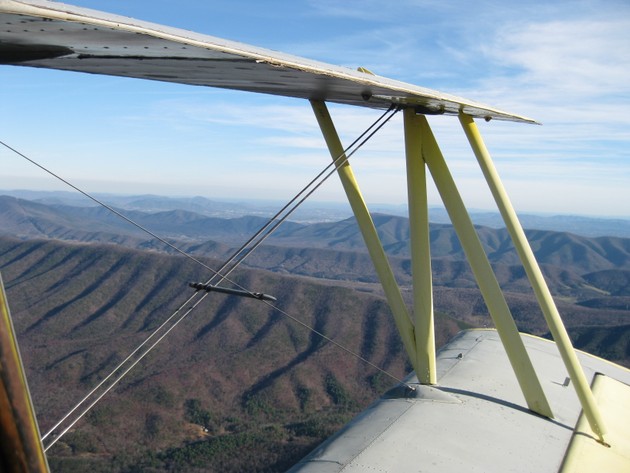 I was flying about 2000 feet above ground level. I made a left turn before the Smoky Mountains and flew up two ridges west of Roanoke.