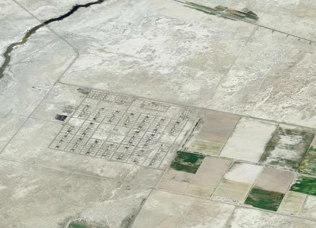 In all the years of doing the Daily Dish’s VFYW contest, I never got more of a gut punch from finding a location than I did with this one. At first I thought we were looking at an agricultural site, or perhaps an old Army barracks; but as someone whose college thesis focused on the Pacific in WW2, I should have recognized it instantly. Your reader's mystery view shows the ghostly footprint of the Topaz “War Relocation Center,” one of ten major sites where Japanese-Americans were forcibly interned during the war. Here’s the view from Google Earth: