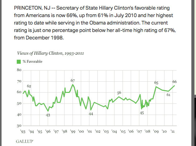 She was popular with her colleagues of both parties when she was in the Senate. She had a sky-high public popularity rating when she was Secretary of State: