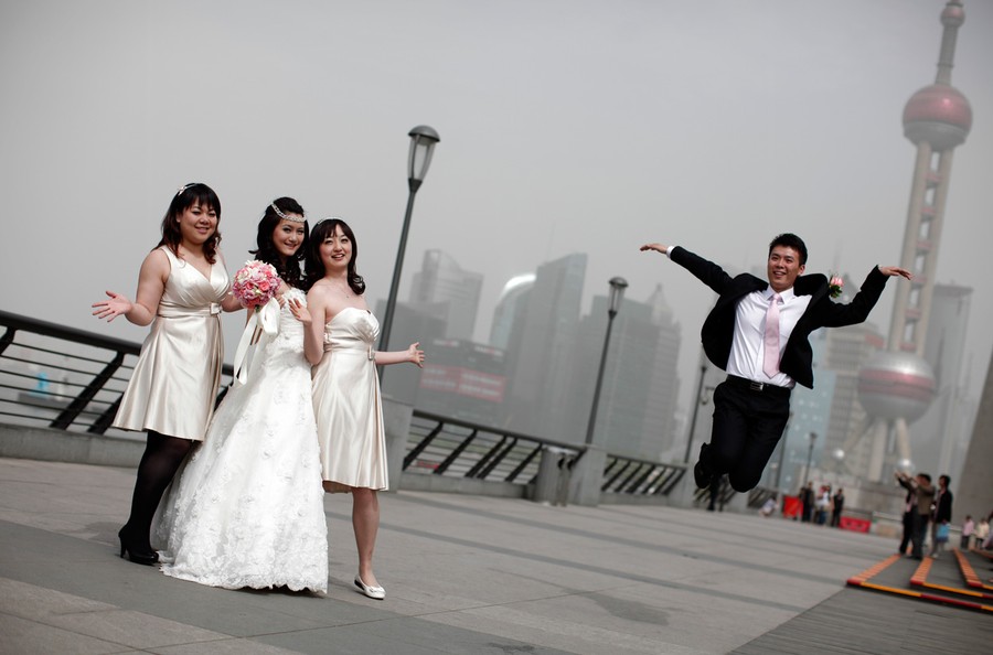 Read moreA 22-year-old woman in a wedding gown is grabbed by Guo Zhongfan, a local community officer, as she attempts to kill herself by jumping out of a seven-story residential building in Changchun, Jilin province, in this combination picture taken May 17, 2011. According to local media, the woman tried to commit suicide after her boyfriend of four years broke up with her, just as they were making plans to get married. The woman did not sustain any injuries during the incident. #