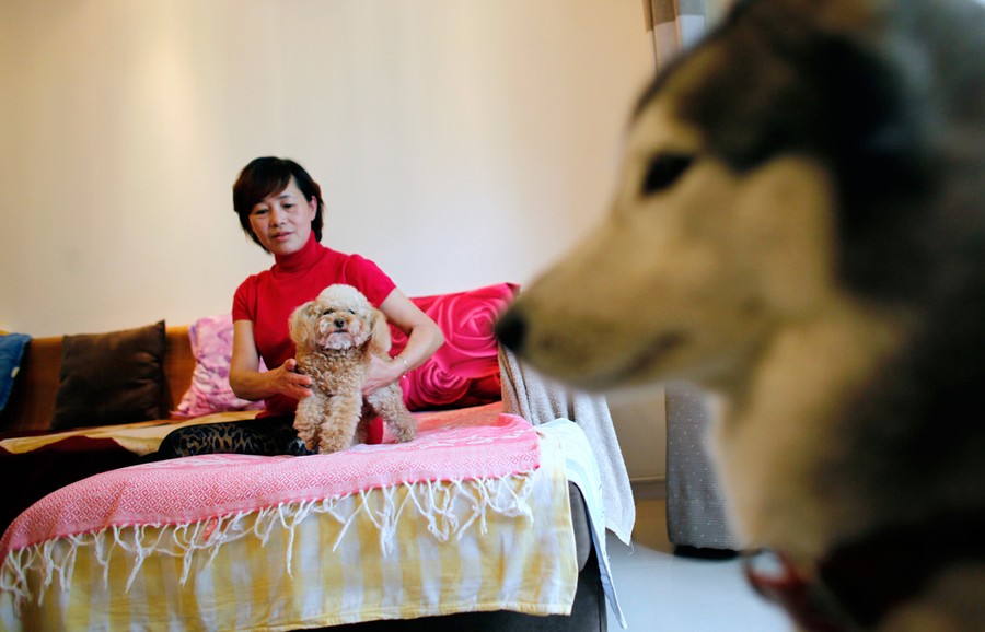 Read moreGuo Huiying holds one of her two dogs at her apartment in Shanghai, on May 13, 2011. Under the city's "One Dog Policy" to be implemented next week, residents may only have one dog per household, must keep dogs in public areas leashed at all times and put muzzles on large dogs to prevent them from biting others. Huiying is in the process of registering her two dogs before the new regulations take affect. #
