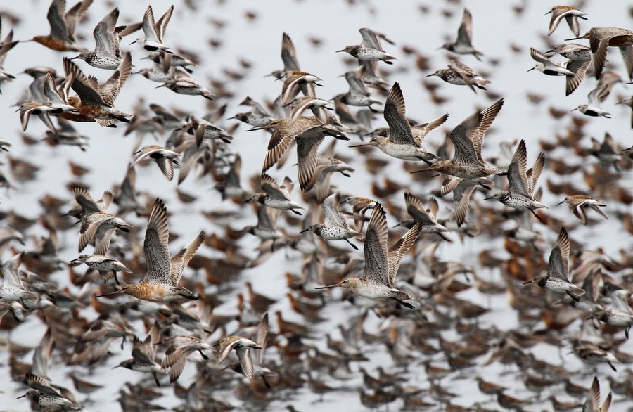 Read moreA flock of snipes flies over the Yalu River Estuary Nature Reserve in the border city of Dandong, Liaoning province, on May 5, 2011. Spanning an area of around 100,000 hectares, the nature reserve encompasses a diverse ecosystem of plants, wild birds and fish. It is also an important habitat for migratory birds for the world's ten flyways, supporting some endangered species of migratory birds, according to local media. #