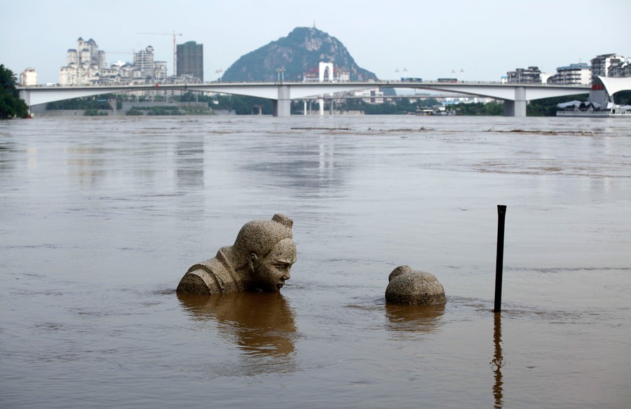 Read moreTwo statues used to be on the bank of Liujiang River is submerged in flood water on May 14, 2011 in Liuzhou, Guangxi Zhuang autonomous region of China. Heavy rainfall has caused water levels of the Liujiang River to rise. #