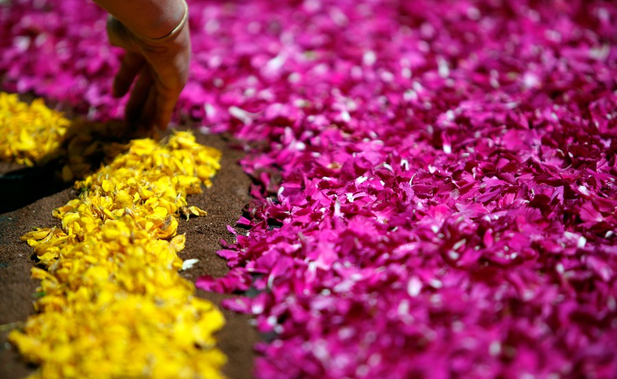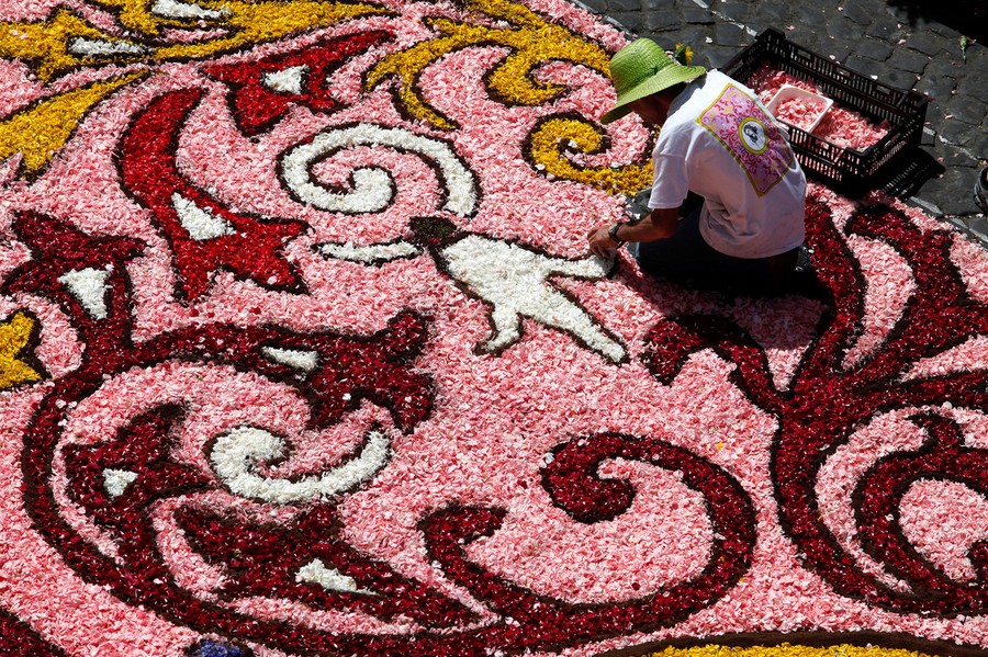 Read moreA worker adds the finishing touches to one of the floral decorations along the main street of Genzano, south of Rome June 19, 2011, during the traditional "Infiorata". The flower decorations, made by residents using flower petals, have been part of this festival celebrating the Corpus Domini (Body of Christ) feast for over 200 years. #