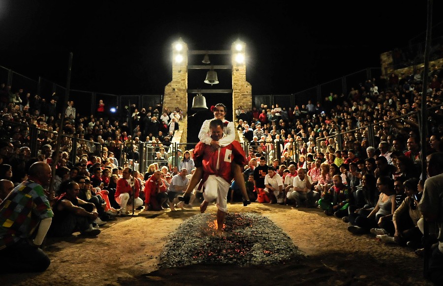 Read moreA reveler carries a woman on his back as she reacts while he walks on the burning embers during the night of San Juan in San Pedro Manrique, Spain, Friday, June 24, 2011. #