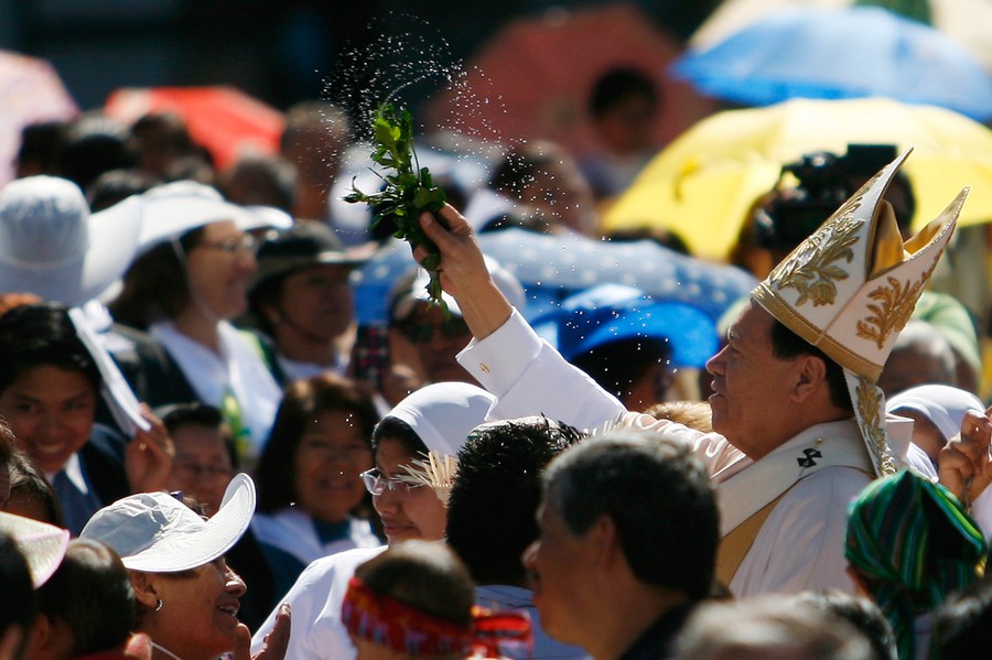 This year, the Catholic observances of Saint John's Day and Corpus Christi nearly overlapped, and festivals and solemn gatherings took place all over the world. The feast of Corpus Christi celebrates the physical body of Jesus Christ, and the Bonfires of Saint John (San Juan) celebrate John the Baptist. The festivals are observed in varying ways from country to country, reflecting older native traditions that have been combined with newer Catholic observances. From a firehose baptism in the Philippines to devils dancing in Panama to a carpet of flowers in Italy, here are some of the ways people observed these two festivals this year.