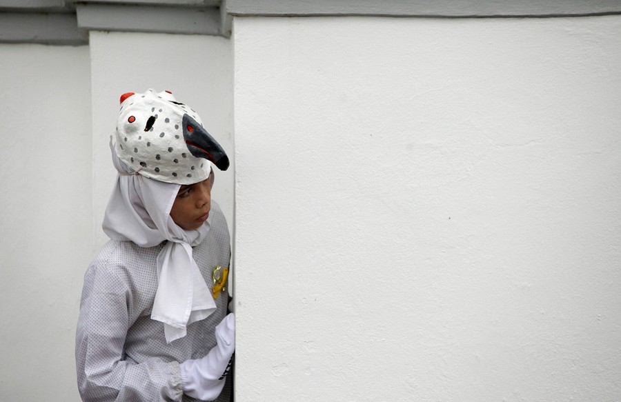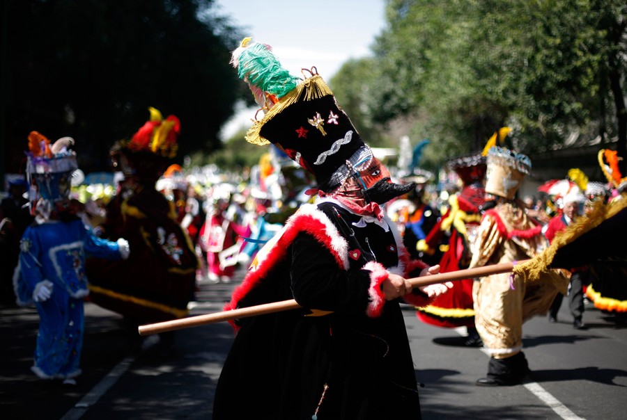Read moreDancers wearing the traditional outfit of the "Chinelos" dance on a street during the Corpus Christi celebration in Mexico City, on June 23, 2011. The tradition of the Chinelo is particular to the southern state of Morelos and dates back to colonial times. The outfits and masks, which are supposed to resemble the faces of the Europeans and always sport an uptilted beard, and became more elaborate between the 1800s and 1900s to make fun of the upper social classes. #