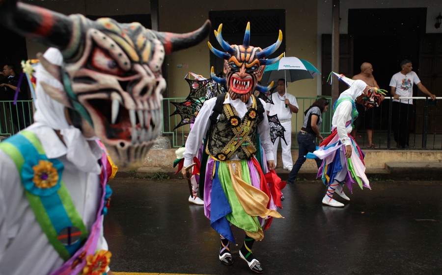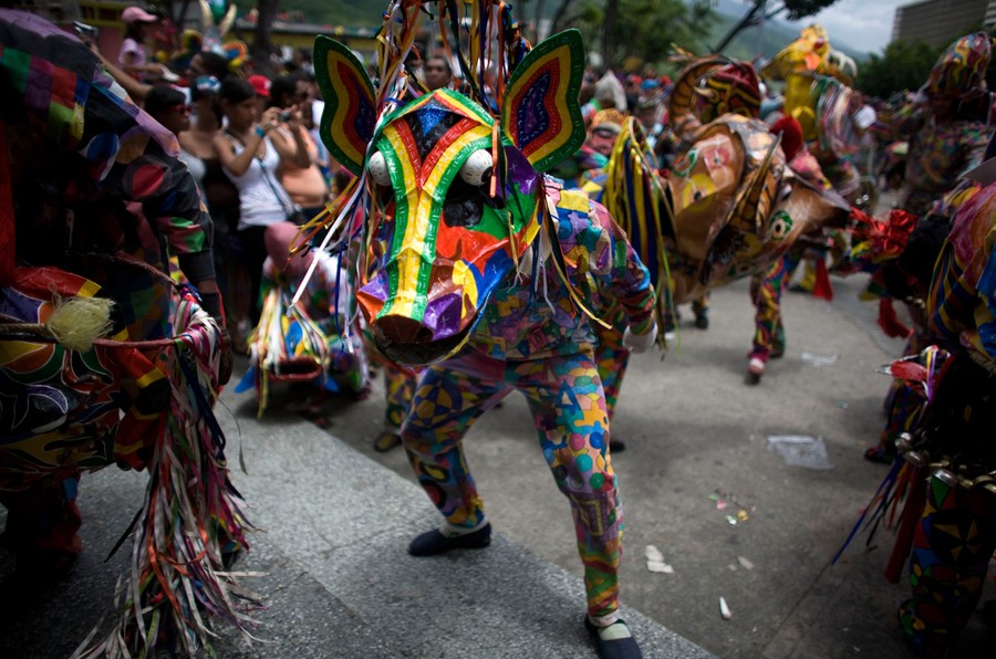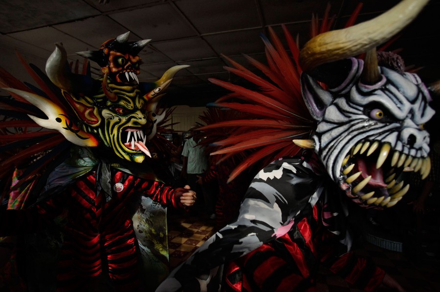 Read morePeople dressed as dancing devils walk down a hill during a traditional dance celebration in Naiguata, Venezuela, Wednesday June 22, 2011. Spanish conquerors and Catholic priests presented dancing devils ceremonies to Latin America's African slave population 200 years ago, who adopted it and incorporated drums into the ritual. The dancing devil ceremony comes the day before the Catholic holiday of Corpus Christi. #