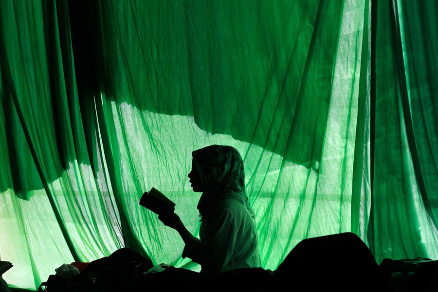 Read moreA student reads the Koran before morning prayer during the holy month of Ramadan at the Al-Mukmin Islamic boarding school in Solo, Indonesia Central Java province, on August 2, 2011. #