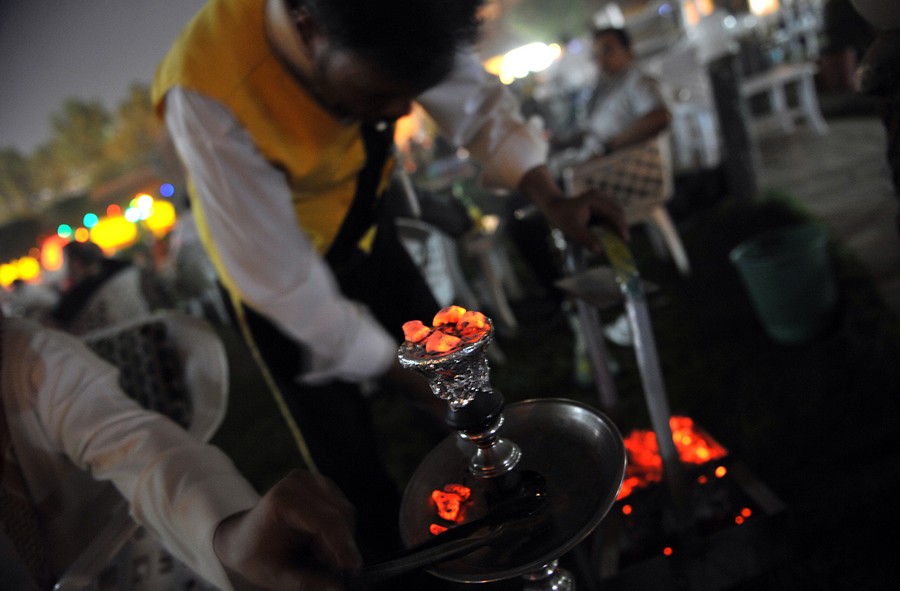Read moreA waiter puts charcoal on a waterpipe at a coffee shop in the Saudi capital of Riyadh, on August 6, 2011 hours before dawn marking the start of a fasting day during the holy month of Ramadan. #