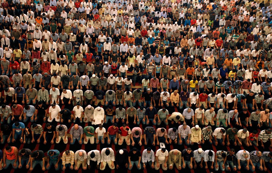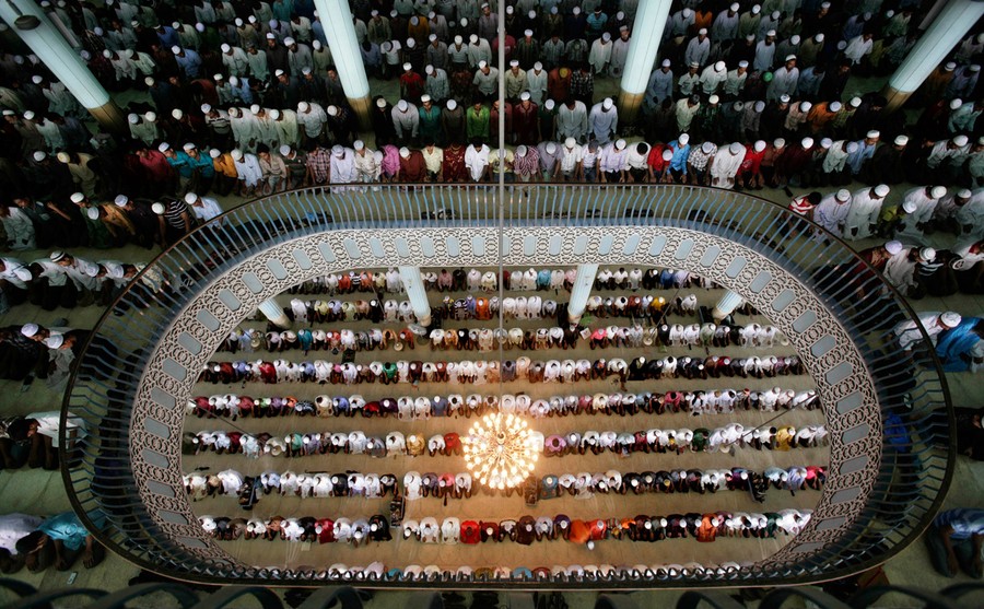 Ramadan, the Islamic month of fasting, began earlier this month with the sighting of the new moon. Throughout this ninth month on the Islamic calendar, devout Muslims must abstain from food, drink, and sex from dawn until sunset. The fast, one of the five pillars of Islam, is seen as a time for spiritual reflection, prayers, and charity. After sunset, Muslims traditionally break the fast by eating three dates, performing the Maghrib prayer, and sitting down to Iftar, the main evening meal, where communities and families gather together. Collected below are images of Muslims around the world observing Ramadan this year.