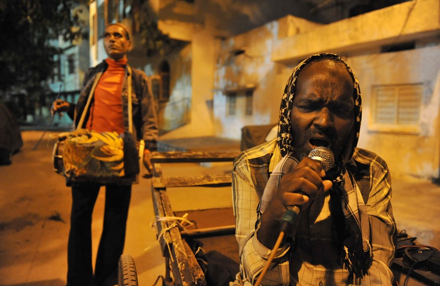 Read moreVisually impaired Indian Muslim singer Mohammed Sheik Khaja Bhai (right) and drummer Mohammed Haji Bhai perform as they roam the streets of the old city in Hyderabad in the early hours of August 10, 2011 during the holy fasting month of Ramadan. For the past 23 years Mohammed shiek Khaja and his group have sang and played music in the streets before dawn to wake up the Muslim residents during the fasting month of Ramadan. #