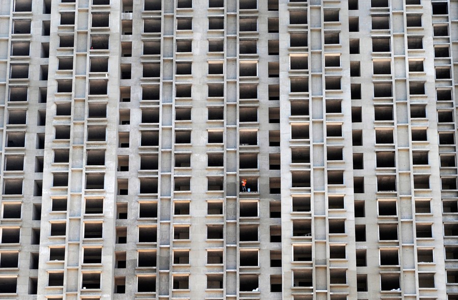 Read moreA laborer works on a residential building under construction in Aksu, Xinjiang Uighur Autonomous Region, on June 17, 2012. China's annual real estate investment growth slowed to the lowest pace since the global financial crisis, official data showed recently, stoking expectations that curbs on the property market may be eased. #