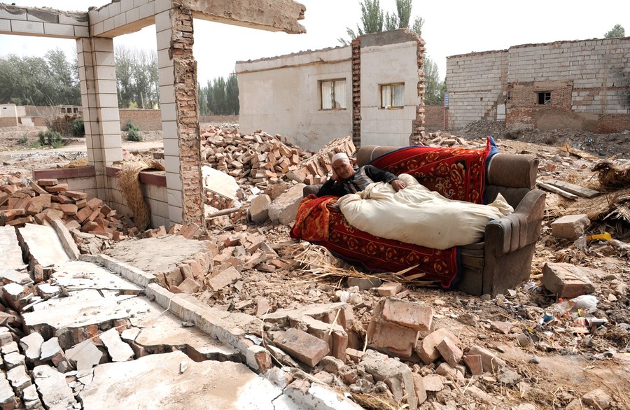 Read moreAn ethnic Uighur man lies on a couch as he keeps an eye on his belongings at his newly-demolished house, which made way for a residential complex in Aksu, Xinjiang Uighur Autonomous Region, on May 13, 2012. #