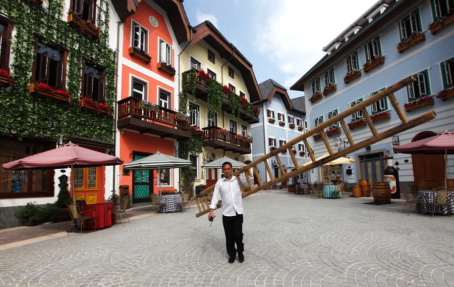 Read moreA construction worker walks with a ladder in the replica village of Austria's UNESCO heritage site, Hallstatt, in China's southern city of Huizhou, on June 1, 2012. Metals and mining company China Minmetals Corporation spent $940 million to build this controversial site and hopes to attract both tourists and property investors alike, according to local newspaper reports. #
