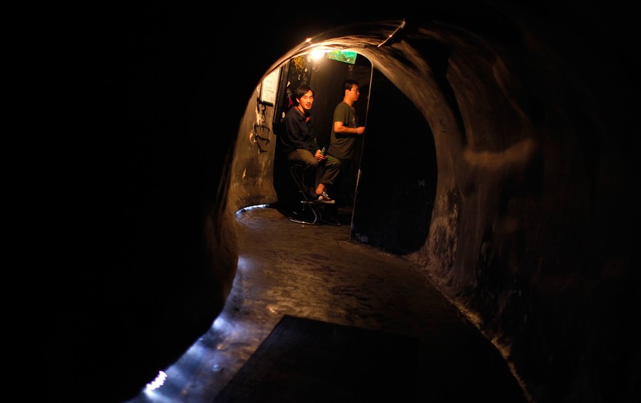 Read moreLocals sit at the entrance of The Shelter nightclub, a former bomb shelter in Xuhui district, Shanghai, on June 2, 2012. The Shelter is one of a handful of former bomb shelters finding new life as commercial venues, ranging from clubs to clothing shops and even wine sellers. Hundreds of thousands of bomb shelters were built across China in the 1960s and 1970s to prepare for possible air raids from the then-Soviet Union amidst a souring relationship between the two communist countries. #