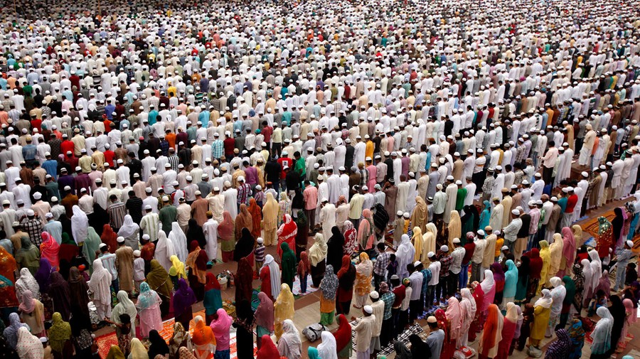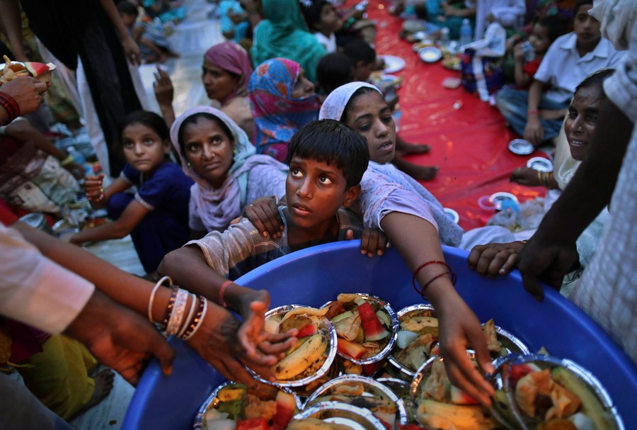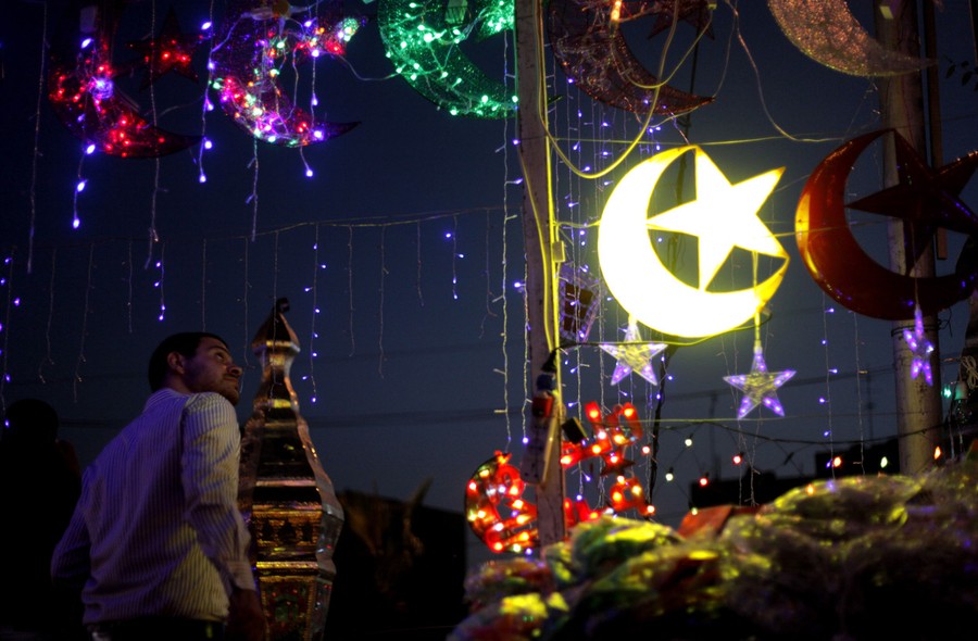 Ramadan, the Islamic month of fasting, will come to a close this weekend with the observation of a festival called Eid al-Fitr. Throughout this ninth month on the Islamic calendar, devout Muslims must abstain from food, drink, and sex from dawn until sunset. The fast, one of the five pillars of Islam, is seen as a time for spiritual reflection, prayers, and charity. After sunset, Muslims traditionally break the fast by eating three dates, performing the Maghrib prayer, and sitting down to Iftar, the main evening meal, where communities and families gather together. Gathered here are images of Muslims around the world observing Ramadan this year.