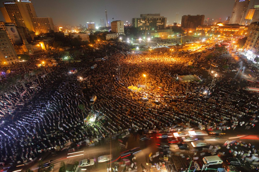 Read moreThousands of Egyptians pray during a rally in Tahrir Square, birthplace of the uprising that ousted Hosni Mubarak 18 months ago, in Cairo, to recite the Quran and support President Mohamed Morsi's recent decision to retire the defense minister and chief of staff. Photo taken on on August 16, 2012. #
