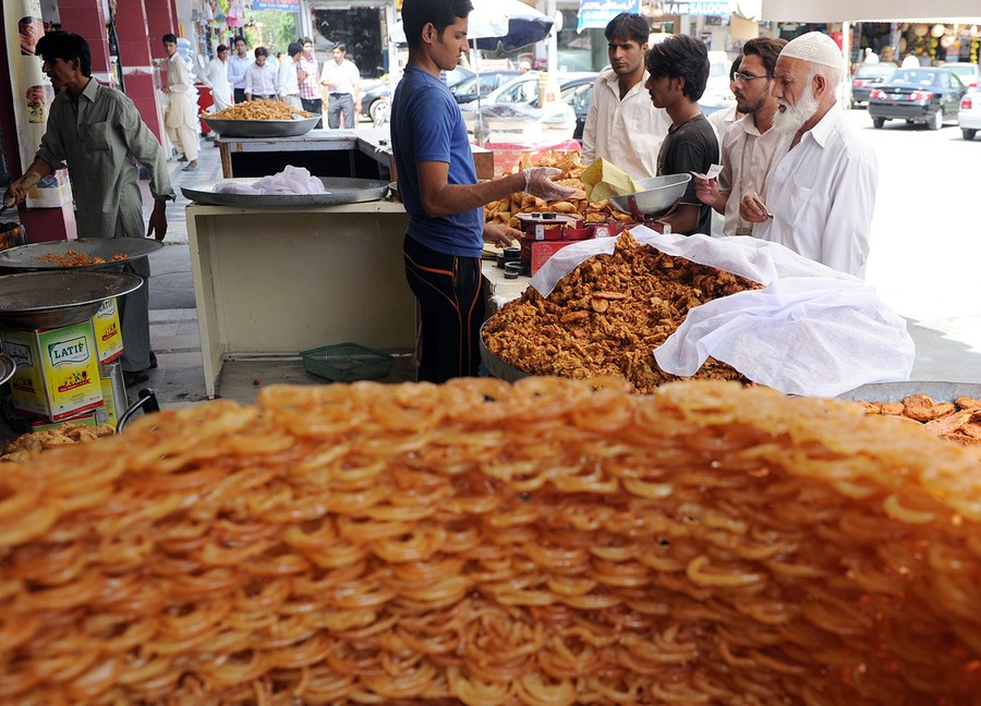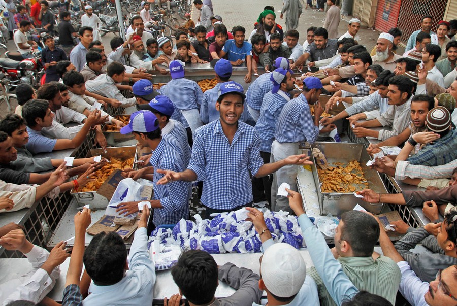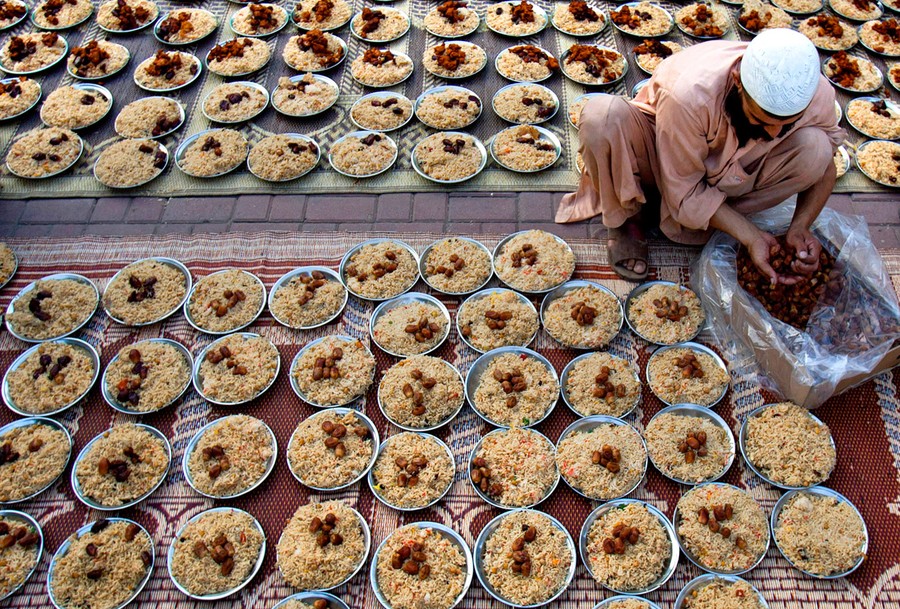 Read moreA man arranges plates with meals for Iftar, or breaking of the fast, donated by an Islamic seminary during the first day of Ramadan in Islamabad, Pakistan, on July 21, 2012. #