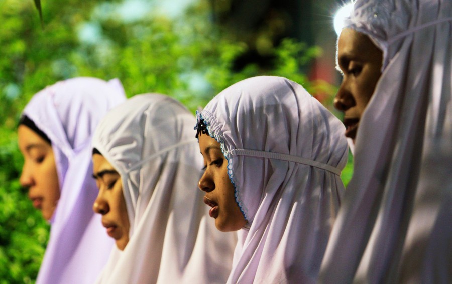 Read moreMuslim women perform an evening prayer called "tarawih" marking the first eve of the holy fasting month of Ramadan at Istiqlal Mosque in Jakarta, Indonesia, on July 20, 2012. #