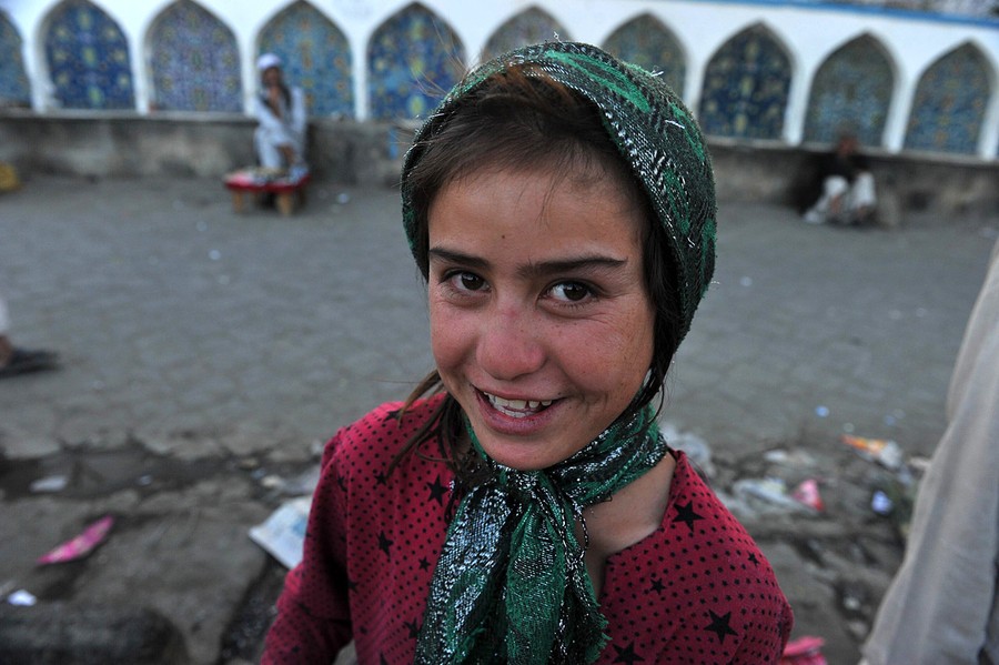 Read moreA young Afghan street vendor smiles as she waits for customers to sell "Bolani", a traditional Afghan food, in a busy market in Kabul, on July 21, 2012, during Ramadan. #
