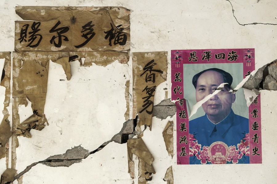 Read moreA portrait of late Chinese Chairman Mao Zedong is torn by cracks on a wall after Saturday's earthquake, in Longxing village, Lushan county, on April 23, 2013. The Chinese characters (L) on the wall read "Bless you". #