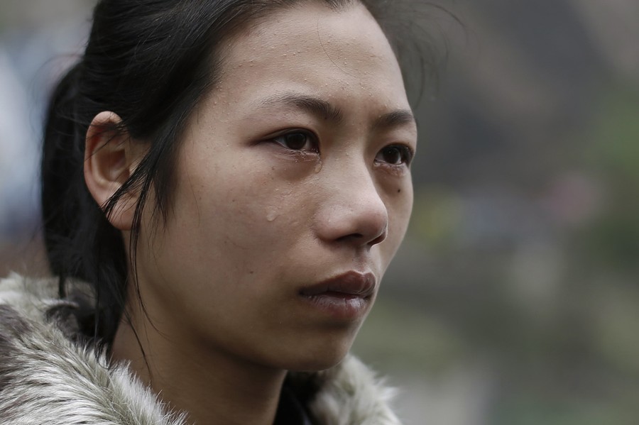 Read moreYang Huan cries while waiting for workers to clear a landslide, in which she believes her husband is buried, after Saturday's earthquake, near Lingguan town of Baoxing county, on April 22, 2013. #