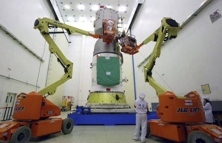 Read moreResearchers test China's first space station module Tiangong-1 inside the Jiuquan Satellite Launch Center in northwest China's Gansu Province, on the edge of the Gobi Desert. China launched the experimental module on September 29, 2011, to lay the groundwork for a future space station underscoring its ambitions to become a major space power. #