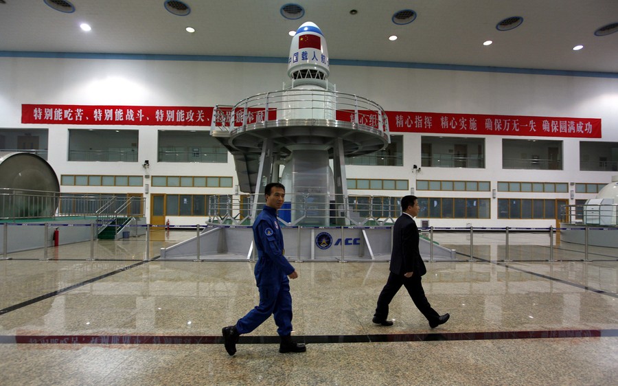 Read moreChinese astronauts Fei Junlong (left) and Yang Liwei walk past training simulation equipment during a media tour of the China Astronaut Center at Beijing Aerospace City, on April 29, 2011. #