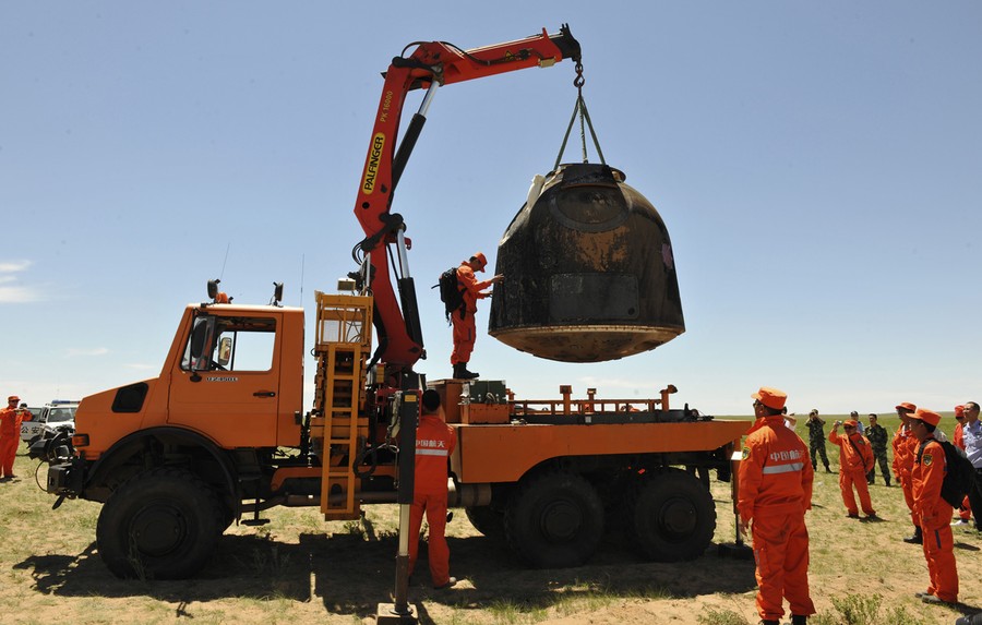 Read moreThe return capsule of the Shenzhou-10 spacecraft lands in the grasslands of north China's Inner Mongolia region, on June 26, 2013, following a 15-day mission in space. #