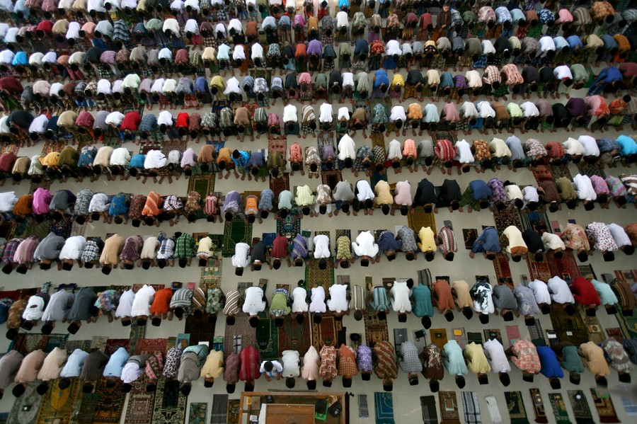 Ramadan, the Islamic month of fasting, began earlier this week, with the observation of the Hilal, or new moon. Throughout this ninth month on the Islamic calendar, devout Muslims must abstain from food, drink, and sex from dawn until sunset. The fast, one of the five pillars of Islam, is seen as a time for spiritual reflection, prayers, and charity. After sunset, Muslims traditionally break the fast by eating three dates, performing the Maghrib prayer, and sitting down to Iftar, the main evening meal, where communities and families gather together. Gathered here are images of Muslims around the world observing Ramadan this year, including areas of recent turmoil, like Egypt and Turkey.