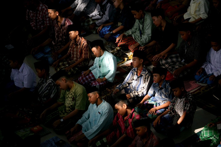 Read moreStudents perform an afternoon prayer on the first day of Ramadan, at Ar-Raudlatul Hasanah Islamic boarding school in Medan, North Sumatra, Indonesia, on July 10, 2013. #
