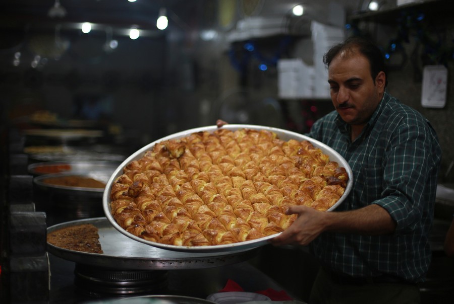 Read moreA Palestinian arranges qatayef, a dessert traditionally eaten during Ramadan, for sale on the first day of Ramadan in the West Bank city of Ramallah, on July 10, 2013. #