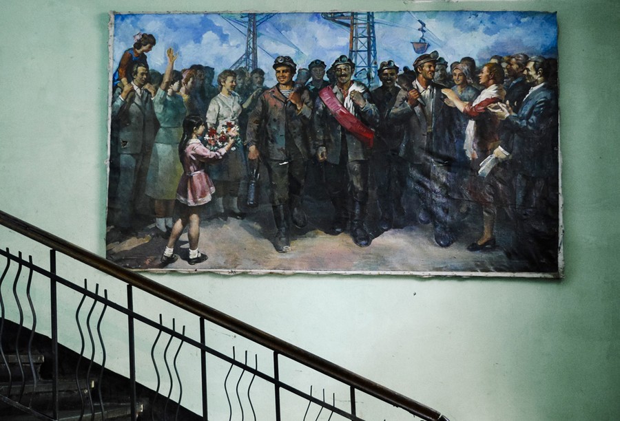 Read moreA mosaic of Lenin and Stalin, made of river stones, at the entrance to Chiatura's main aerial tramway station. Stalin's relationship with Chiatura dates to his days as a revolutionary fugitive hiding out in the mines above the town. #