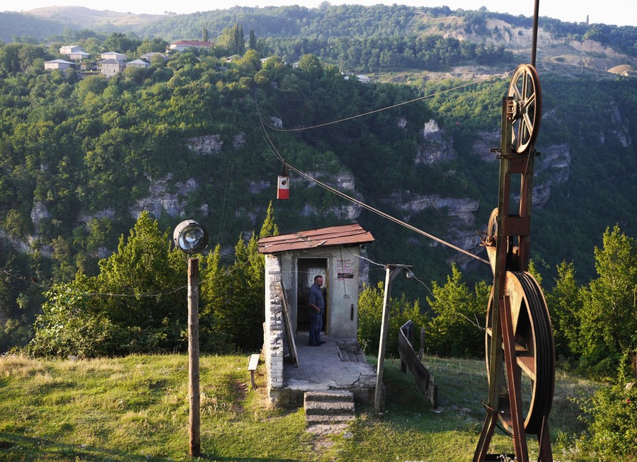 The mining town of Chiatura, Georgia, surrounded by steep cliffs, is criss-crossed by a network of aging Soviet-era aerial tramways that are still in use today. In the early 20th century, after the U.S.S.R. annexed Georgia, Soviet authorities were intent on extracting the vast manganese deposits beneath Chiatura. In the 1950s, planners began work on what locals call the "Kanatnaya Doroga," or "rope road," that still connects almost every corner of the town. Today, while some of the cars have rusted away, 17 of the aging tramways remain in service. Photographer Amos Chapple (who previously took us inside Iran and Turkmenistan) recently visited Chiatura, where he became fascinated with the cable cars and the locals who operate and ride them daily.